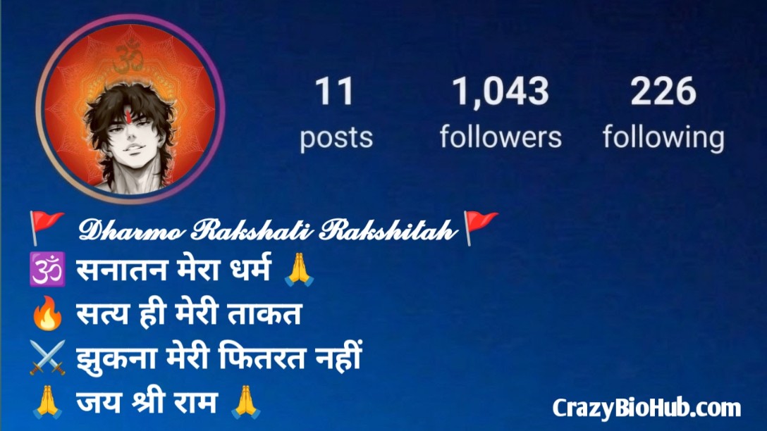 धर्मो रक्षति रक्षित Bio For instagram