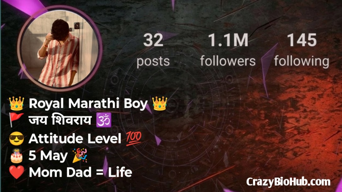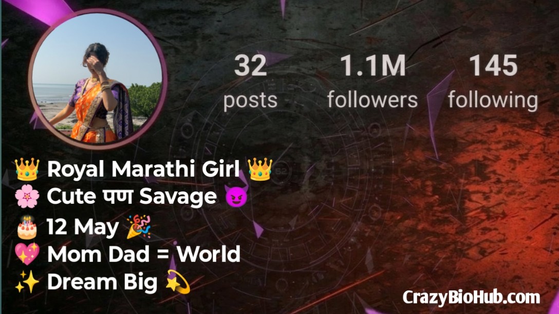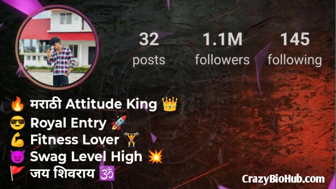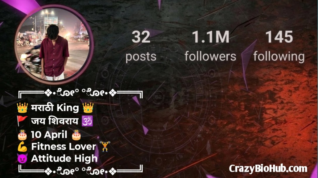 Instagram Bio in Marath आजकाल खूप लोकप्रिय होत आहे, कारण प्रत्येकाला आपल्या प्रोफाइलमधून आपली ओळख वेगळी आणि आकर्षक दाखवायची असते. मराठी बायोमुळे तुमची भाषा, संस्कृती आणि व्यक्तिमत्त्व अधिक सुंदर पद्धतीने व्यक्त होते. तुम्ही attitude, love, friendship, motivational किंवा shayari style मध्ये मराठीत बायो लिहू शकता, ज्यामुळे तुमचा प्रोफाइल इतरांपेक्षा वेगळा दिसतो. या पेजवर तुम्हाला best Marathi Instagram Bio ideas मिळतील, जे तुम्ही सहज copy करून आपल्या Instagram, Facebook किंवा WhatsApp वर वापरू शकता आणि तुमचा profile अधिक stylish आणि unique बनवू शकता.