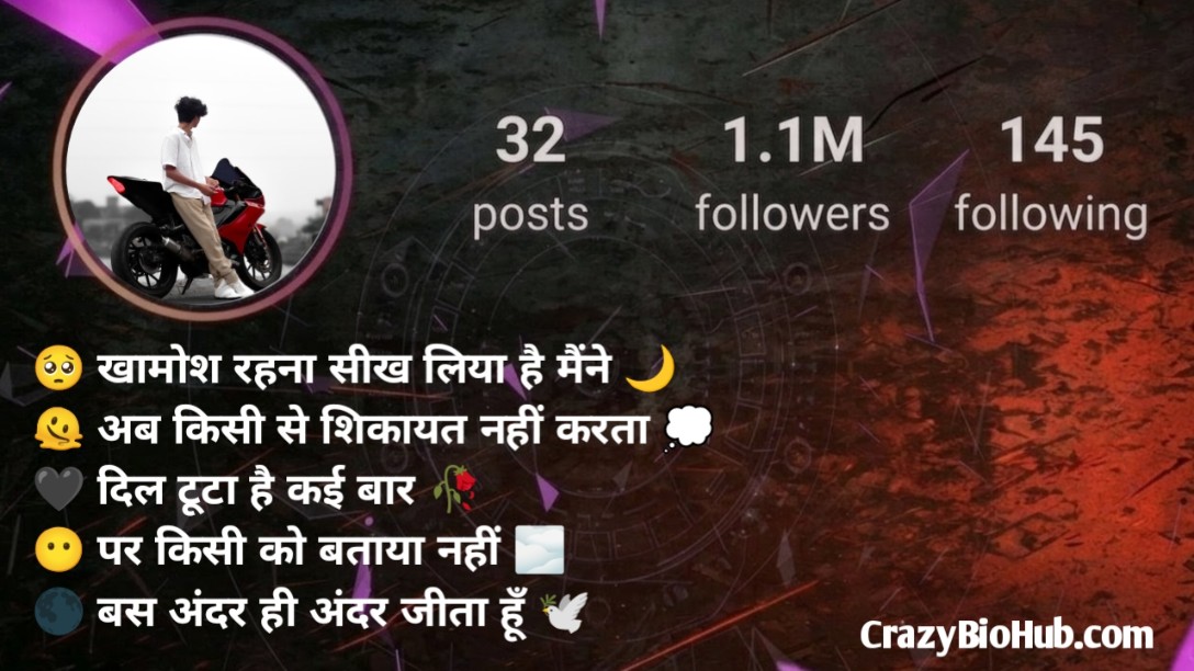 हमारी शानदार Shayari Bio For Instagram की लिस्ट को जरूर देखें, जो आपके प्रोफाइल को stylish और emotional बना देगी। इसमें आपको मिलेंगे Shayari Bio for Insta, Shayari Bio in Hindi, Short Shayari Bio, Love Shayari Bio, Sad Shayari Bio और Attitude Shayari Bio जैसे बेहतरीन ऑप्शन। अपने mood के हिसाब से एक शायरी bio चुनें और अपने प्रोफाइल को एक unique और दिल छू लेने वाला अंदाज़ दें।