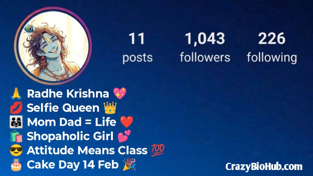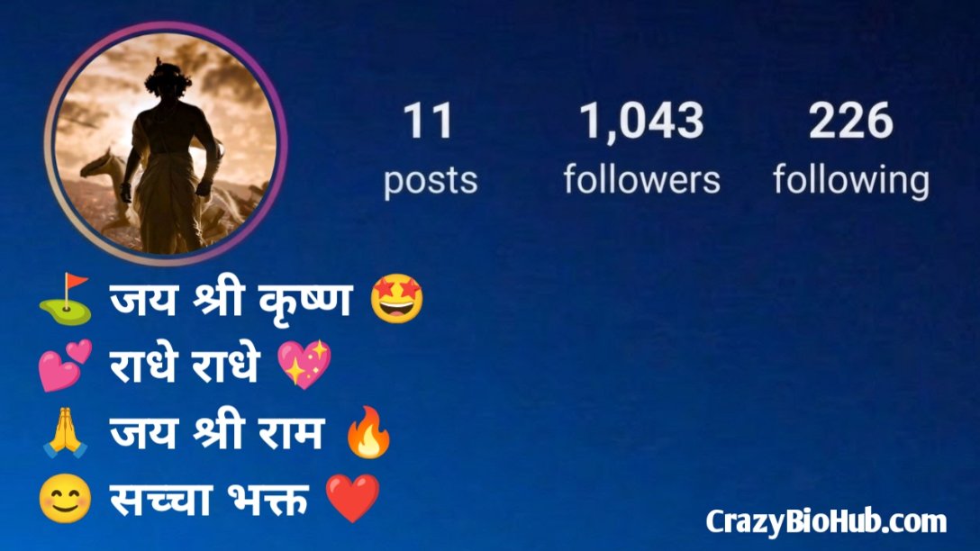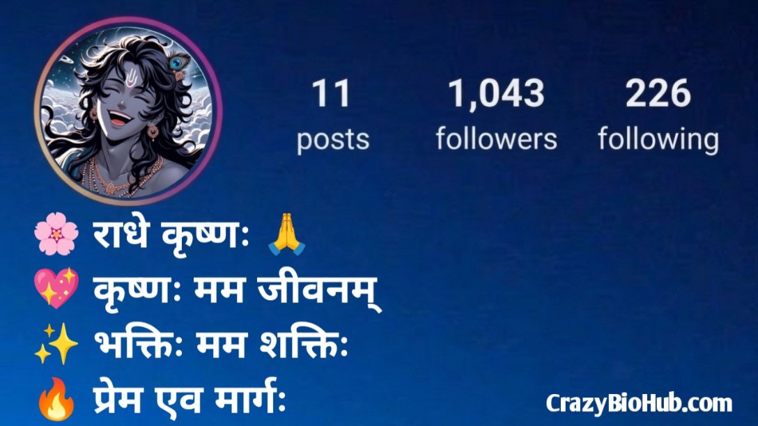 अगर आप अपने Instagram प्रोफाइल को और भी आकर्षक और आध्यात्मिक बनाना चाहते हैं, तो ये बायो आपके लिए बिल्कुल परफेक्ट हैं। ये बायो आपकी भक्ति, प्रेम और श्रीकृष्ण के प्रति अटूट विश्वास को खूबसूरती से दर्शाते हैं ।