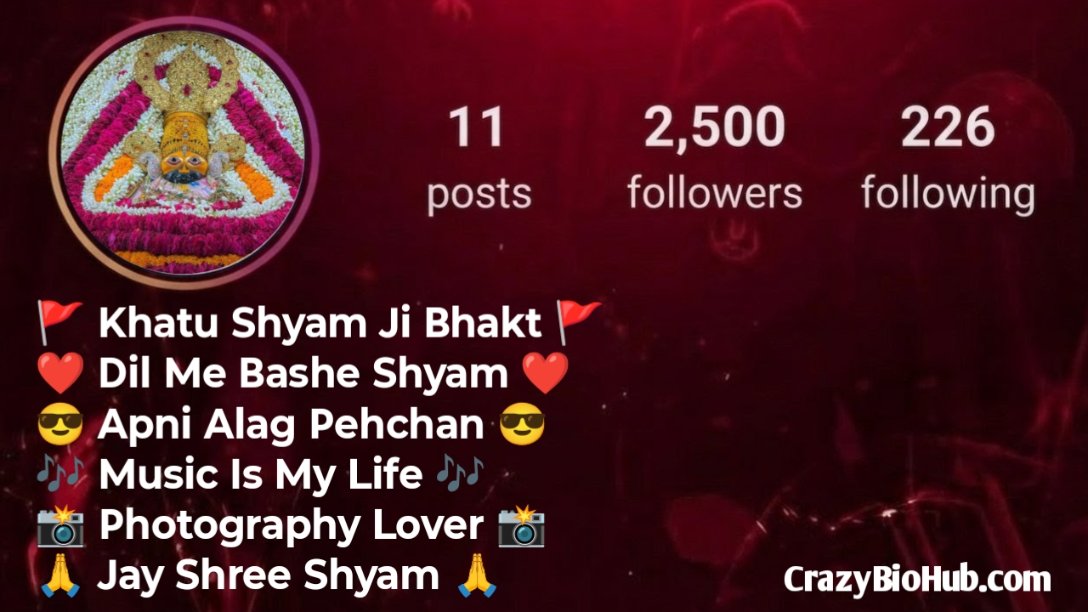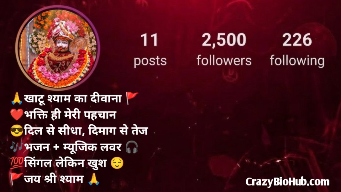 आज हम आपके लिए लेकर आए हैं Khatu Shyam Ji Bio For Instagram जो हर श्याम भक्त और खाटू वाले बाबा में आस्था रखने वालों को बहुत पसंद आएंगे। यहां आपको अलग-अलग टाइप के बायो मिलेंगे जैसे Devotional Bio, Attitude Bio, Stylish Bio और Hindi + English Mix Bio